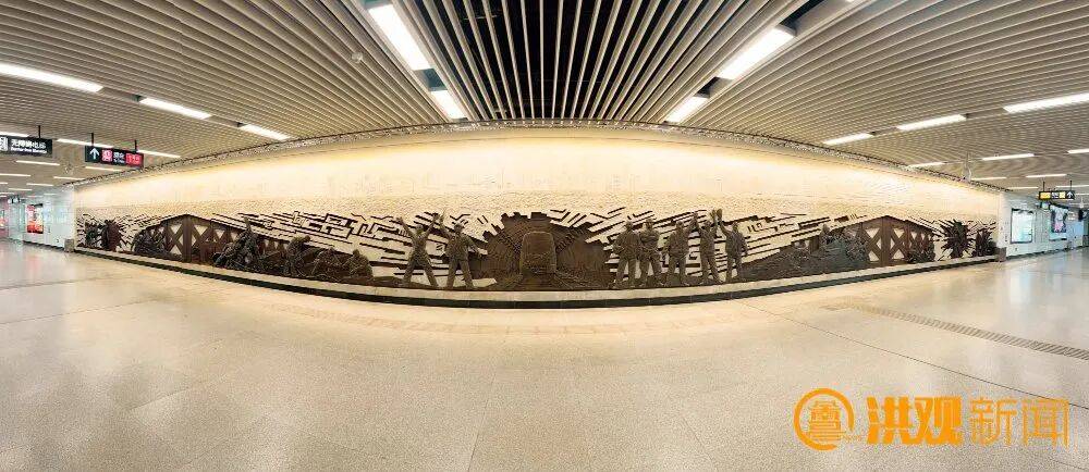 南昌地铁的“颜值”与“内涵”,早已成为这座英雄城的一张新文旅名片。八一广场站的《回眸展望》文化墙,萃取城市地标建筑与抽象山水元素,以科技感编排串联起南昌古今发展脉络,藏着英雄城的厚重底蕴;绳金塔站将白墙青砖、古剑金绳等历史元素与星空元素相融,抬头可见璀璨“星辰”,低头皆是历史印记,让千年古塔的厚重与星空的浪漫在此碰撞交织;怀玉山大道站则主打“赛博朋克”风格,提取网络虚拟符号打造智能空间,尽显南昌的现代化与数字化活力,成为年轻群体打卡的热门站点。“本来是坐地铁去绳金塔景区,结果在站内就拍了半个多小时。”来自武汉的游客吴晴笑着说道。
